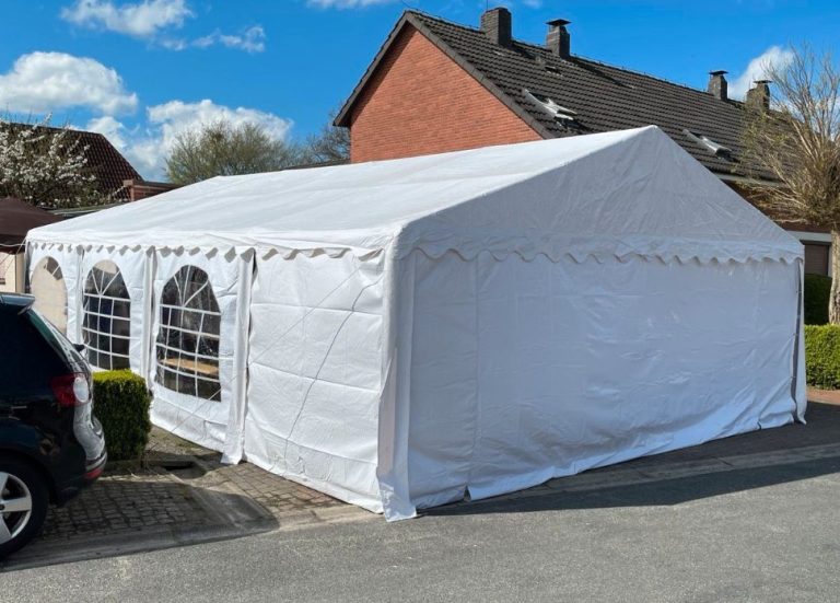 Dann ist der Premium-Faltpavillon in 3x6m die richtige Wahl. Mit dem massiven Rahmen und den hochwertigen Textilplanen bleiben Sonne und Regen draußen!
